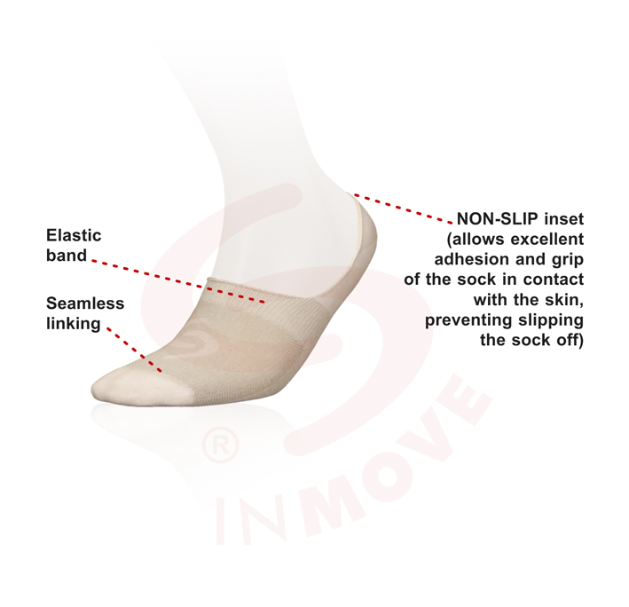 Special, polyurethane NON-SLIP finish allows excellent adhesion and grip of the sock in contact with the skin, preventing slipping the sock off.