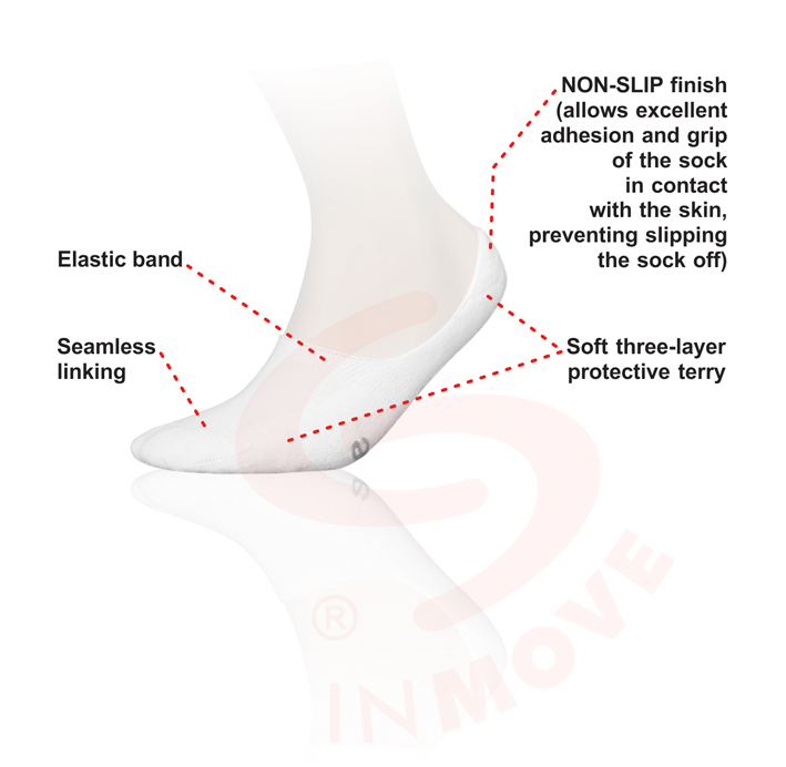 Special, polyurethane NON-SLIP finish allows excellent adhesion and grip of the sock in contact with the skin, preventing slipping the sock off.